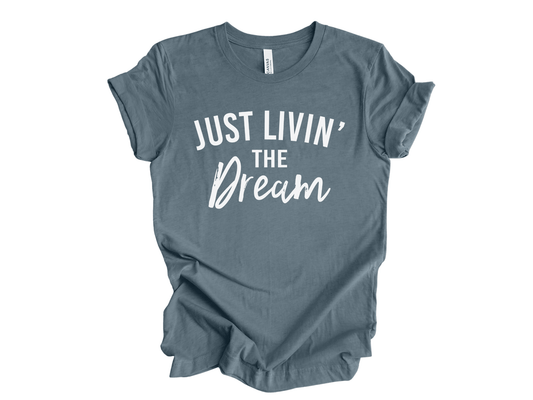 Just Livin' the Dream in White Inspirational Graphic Tee
